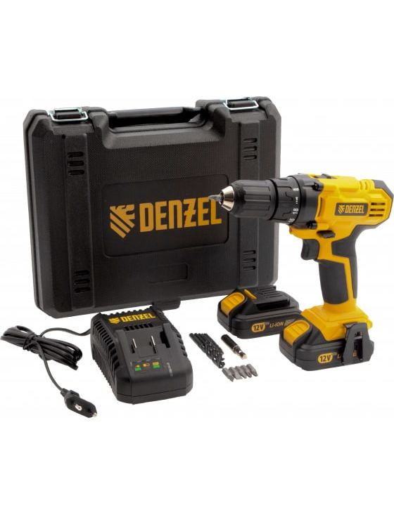 Аккумуляторная дрель-шуруповерт DENZEL CDL-IB-12-02 26111 используется в строительстве и монтажных работах.