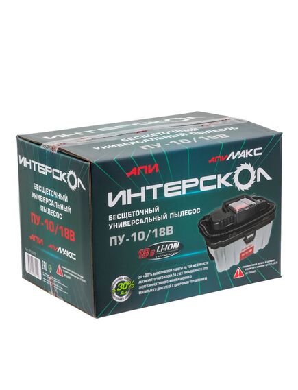 Пылесос строительный аккумуляторный ИНТЕРСКОЛ б/щ (АПИ, без а/б и ЗУ, 18В) ПУ-10/18В (771.0.0.70)