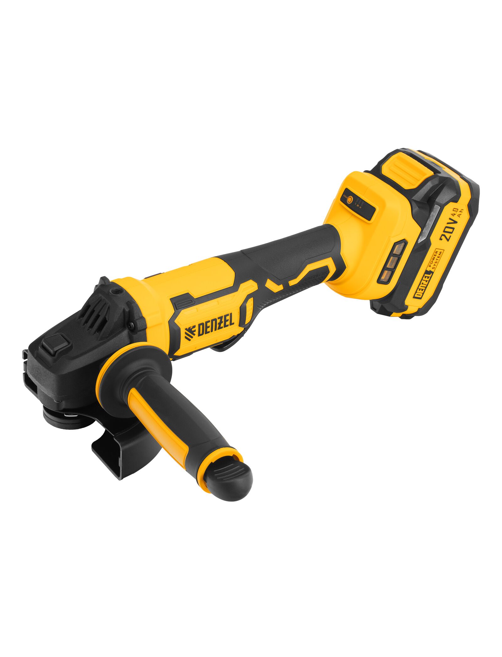 Шлифмашина угловая аккум. DENZEL б/щ (125мм, 1а/б 4А*ч 20В, ЗУ) AGH-BL-20-125 (27010)