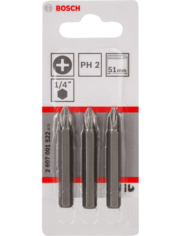 Бита PH2 51 мм ХН 3 шт BOSCH 2607001522