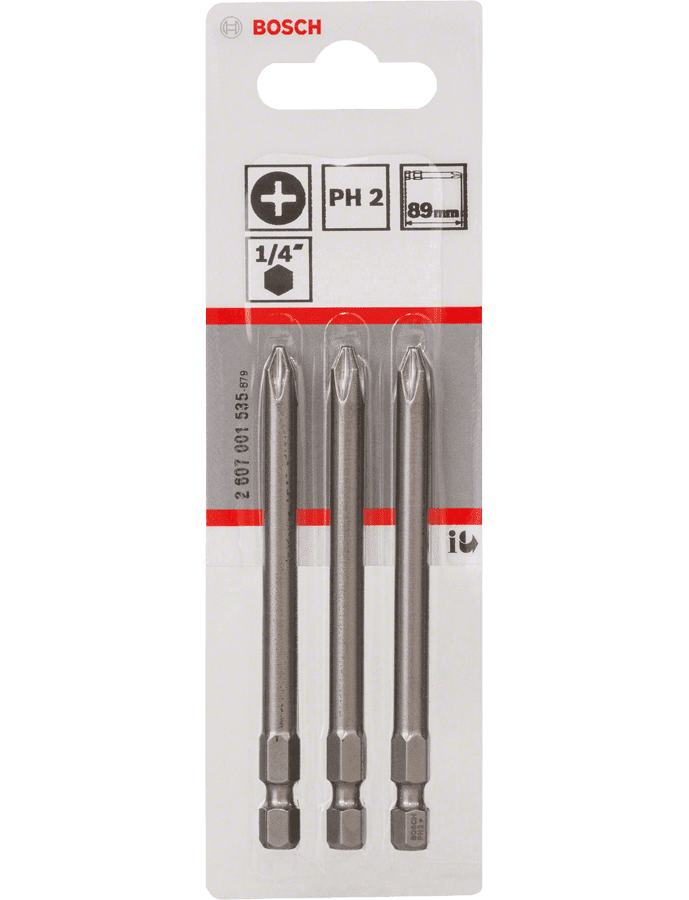 Бита PH2 89 мм 3 шт BOSCH 2607001535
