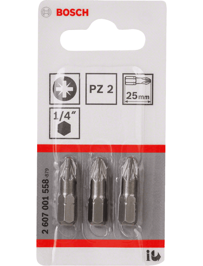 Бита PZ2 25 мм 3 шт BOSCH 2607001558