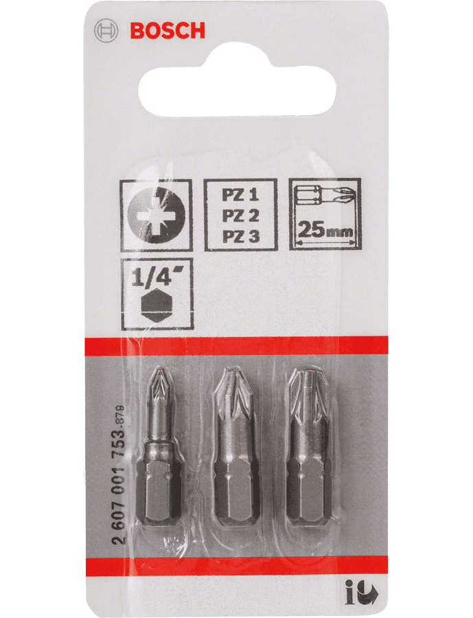 Бита РZ1-2-3 25 мм 3 шт ХН BOSCH 2607001753