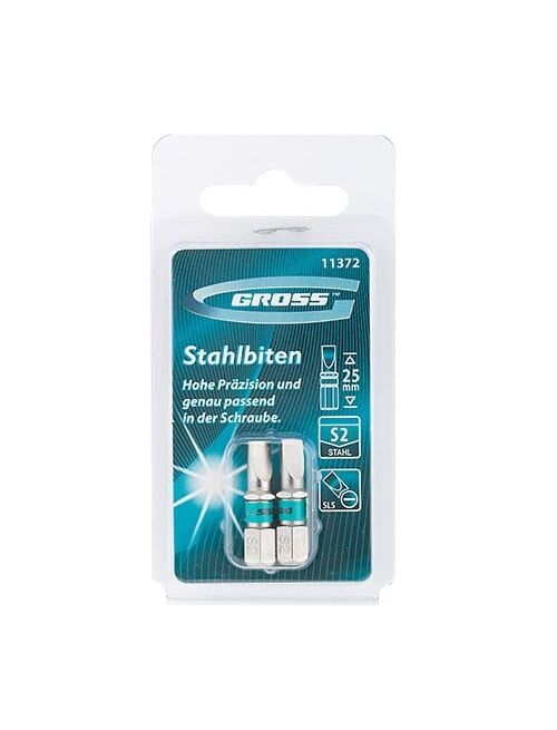 Набор бит GROSS 11372 предназначен для использования в качестве насадок в ручном и механическом инструменте. Изготовлены биты из высококачественной инструментальной стали марки S2. Твердость бит составляет 58-62 HRС.Основу биты составляет шестигранный хвостовик размером 0,6 см (1/4 дюйма).