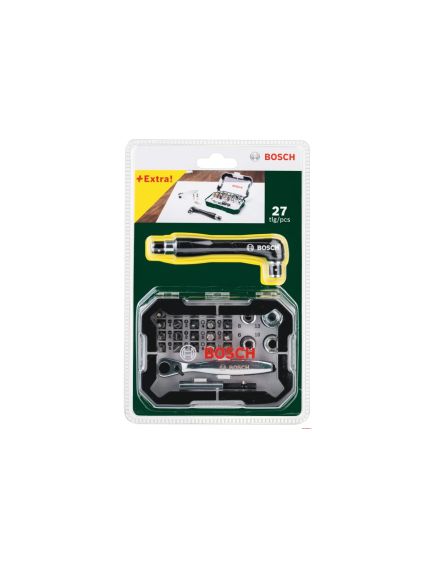Набор бит 27 шт с трещоткой и угловой отверткой BOSCH 2607017392