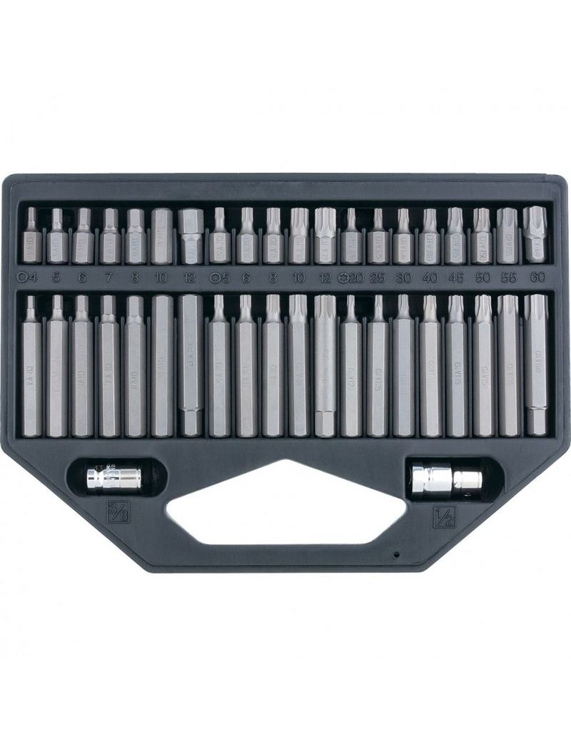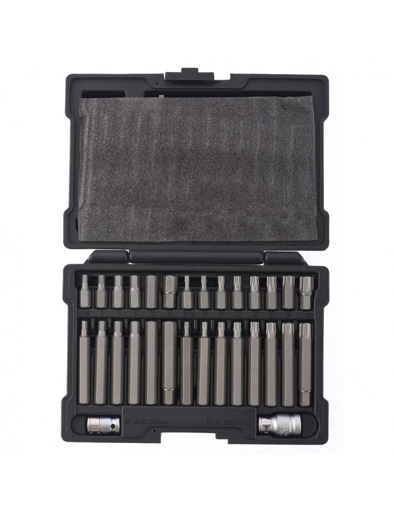 Набор сменных отверточных бит, изготовленных из хромованадиевой стали, сочетающей в себе высокую твердость и износостойкость. Набор бит предназначен для работы с крепежом различного профиля: HEX, TORX, SPLINE.