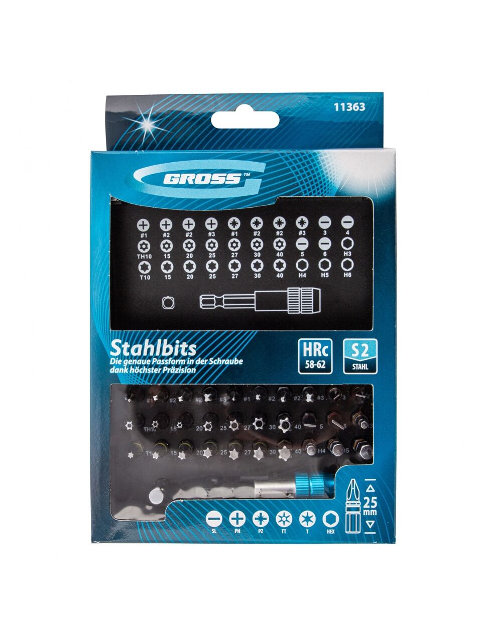 Набор бит с магнитным адаптером Gross 11363 из стали S2, включает в себя 32 предмета, упакованные в пластиковый кейс. Предназначен для монтажа и демонтажа резьбовых соединений с помощью шуруповерта. Набор подойдет для выполнения ремонтных, монтажных и слесарных работ, в том числе для сборки мебели, бытовых электроприборов, самокатов, велосипедов и т.д.. В комплект входят биты самых актуальных размеров, переходник с шестигранника на квадрат 1/4 дюйма и магнитный адаптер для бит.
