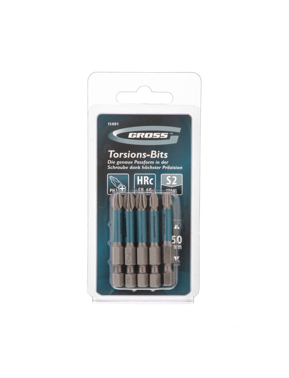 Набор бит торсионных PH3 x 50 мм для ударных шуруповертов 5 шт GROSS 11491