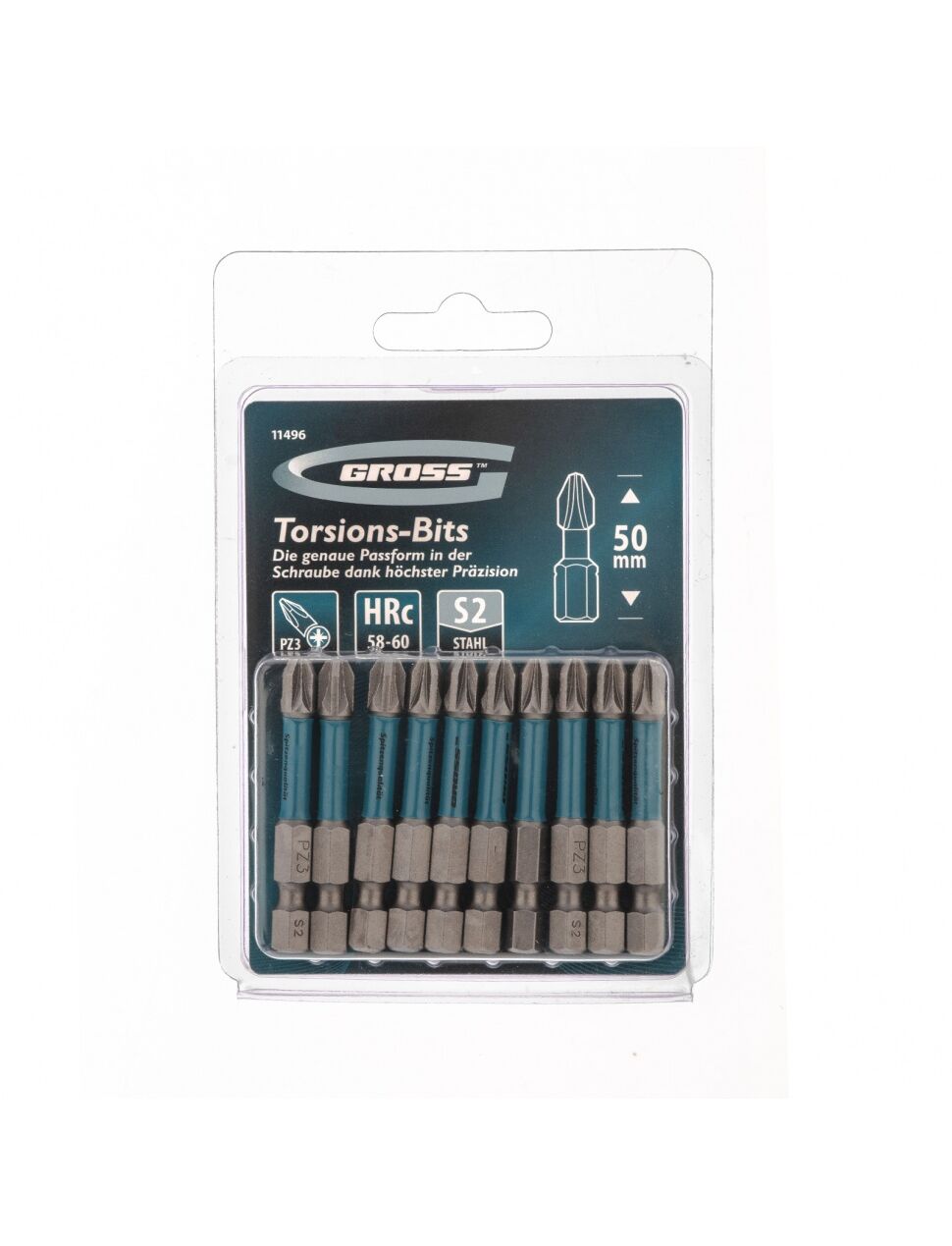 Набор бит торсионных PZ3 x 50 мм для ударных шуруповертов 10 шт GROSS 11496