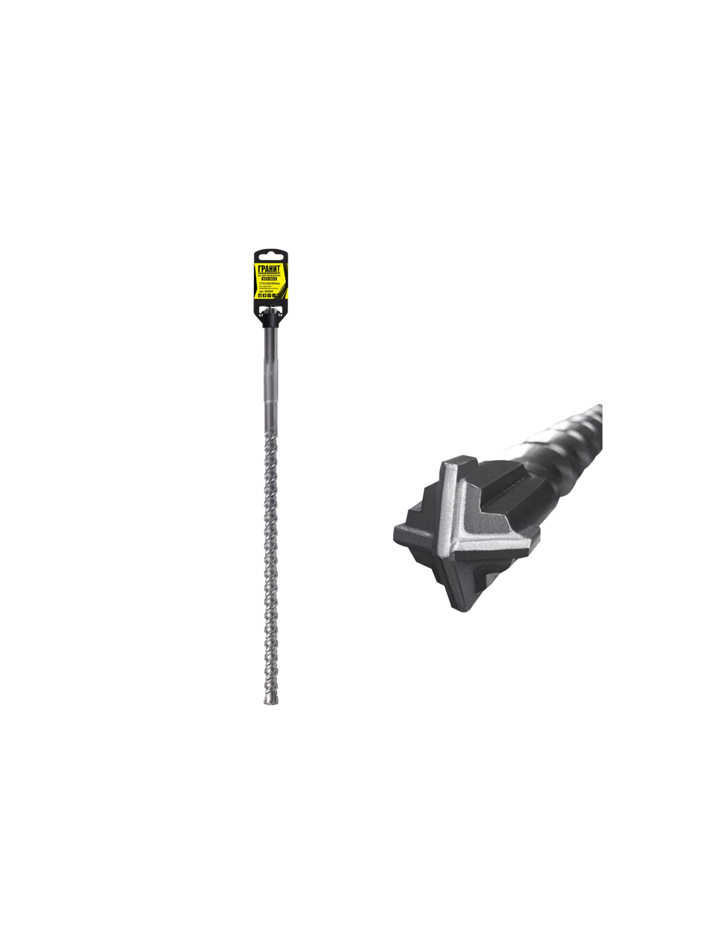 Бур SDS-Max ГРАНИТ 820520 используется в перфораторах и отбойных молотках с системой крепления SDS-max для ударно-вращательного сверления. Бур оснащен увеличенной головкой с 4-мя резцами, что обеспечивает высокую скорость прохождения сквозь материал и долгий срок службы. Особая форма спирали ускоряет удаление продуктов сверления, уменьшая нагрев инструмента. Деформация бура от ударных нагрузок исключена за счет усиленного стального стержня. Предназначен для работы по бетону, граниту, кирпичной кладке и твердым известнякам.