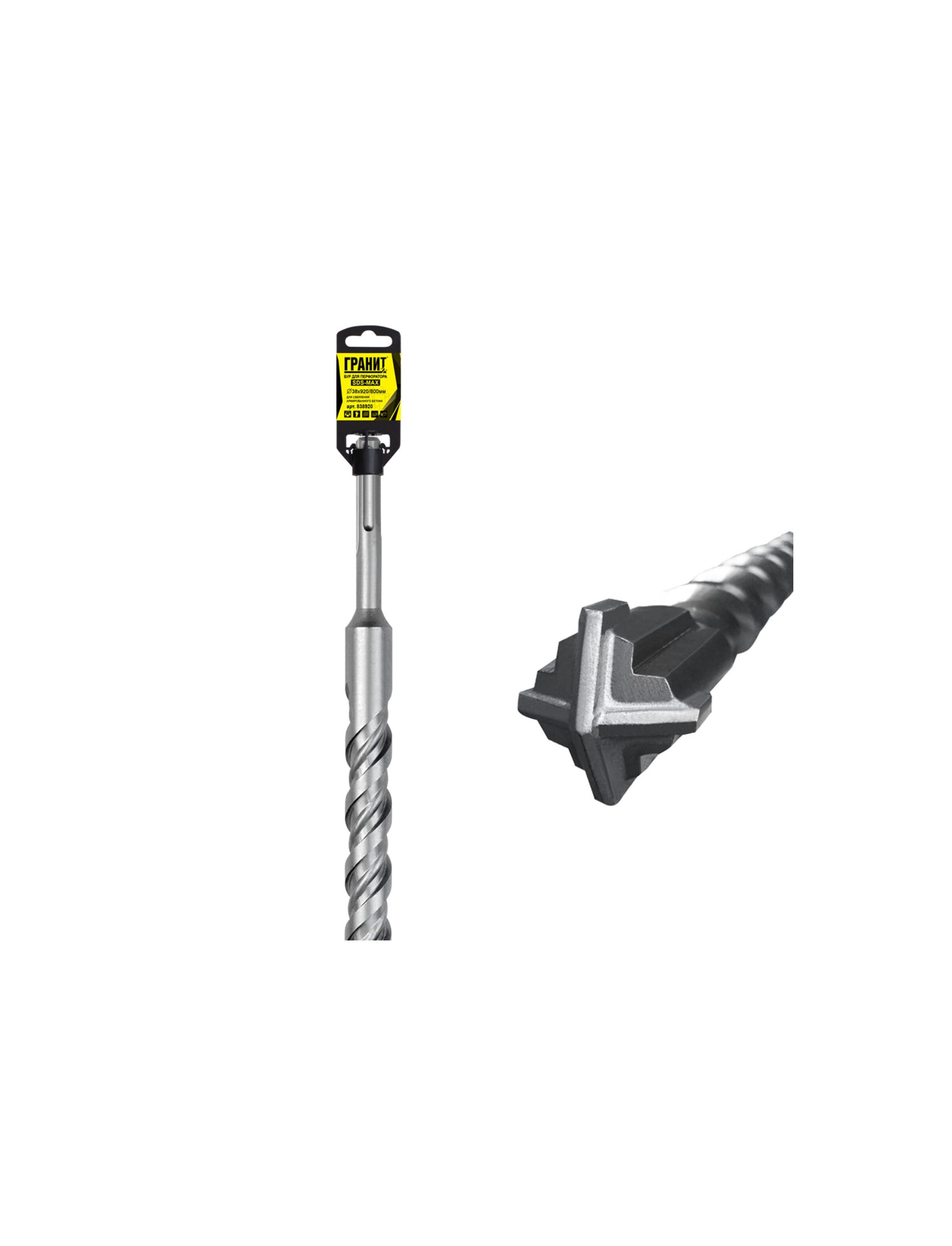 Бур по бетону 38 х 920 мм SDS MAX c крестовой пластиной Quadro-X ГРАНИТ 838920