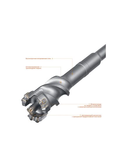 Проломные буры предназначены для сверления бетонных и кирпичных стен, полов, перекрытий. Используются при монтаже магистральных линий кондиционеров, газовых и водопроводных труб, прокладке электрических кабелей большого сечения. Рекомендуется использовать на перфораторах с мощностью не менее 1000 Вт.