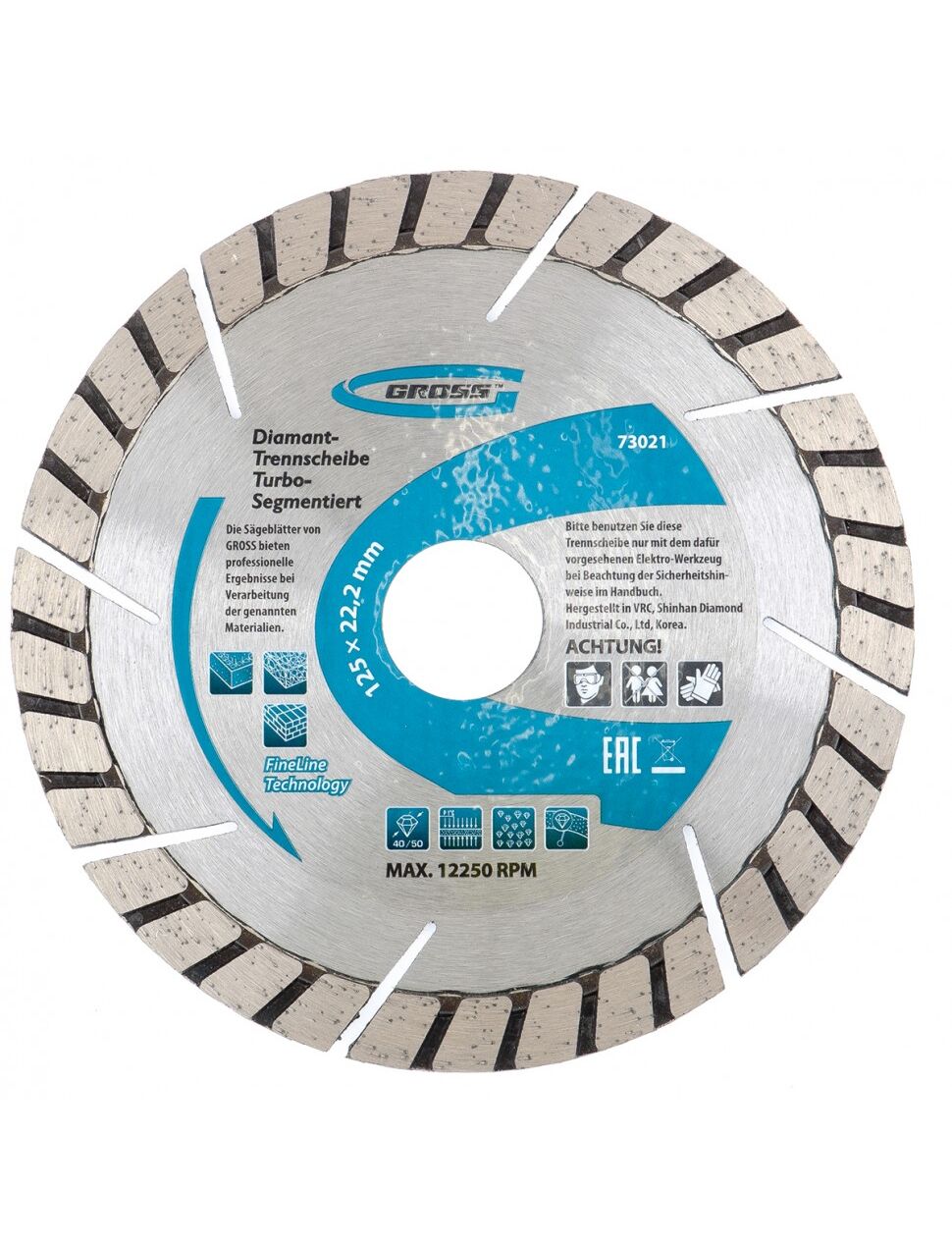 Диск алмазный 125 х 22,2 мм турбо-сегментный сухая резка GROSS 73021