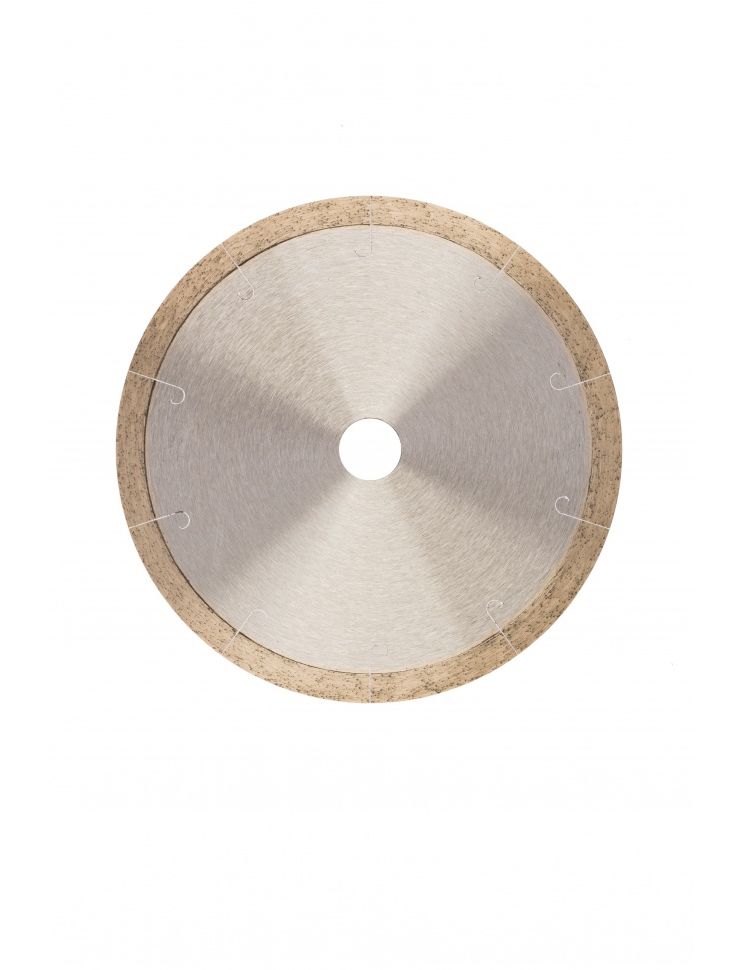 Сплошной алмазный диск Gross 180х22,2 мм 73041 с лазерной перфорацией для мокрого резания используется в качестве расходника на УШМ или плиткорезах с посадочным размером 22,2 мм. Оптимальное соотношение серебра, кобальта и других качественных компонентов в металлической связке позволяет работать с гранитом, керамикой, керамогранитом, мрамором, натуральным и искусственным камнем. Метод мокрого шлифования подразумевает использование водяного охлаждения, что способствует снижению перегрева и эффективному отводу пыли.