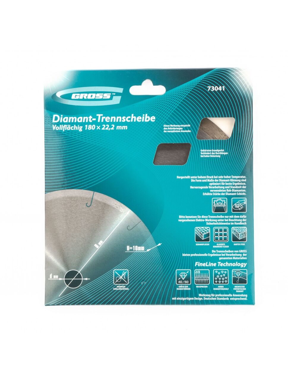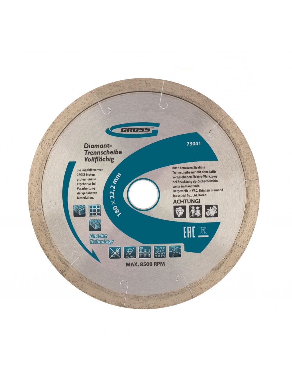Диск алмазный 180 х 22,2 мм сплошной c лазерной перфорацией мокрое резание GROSS 73041