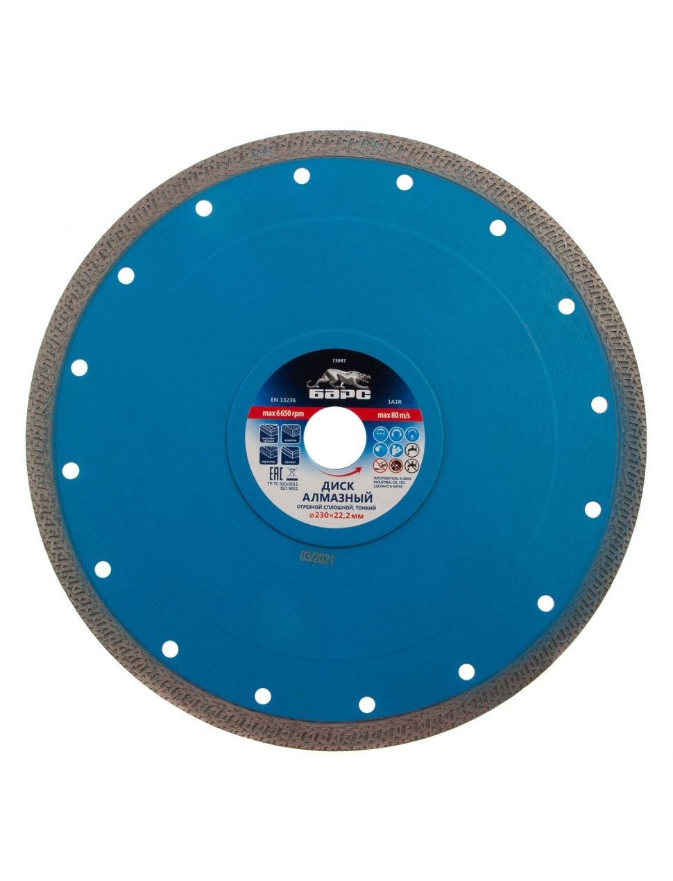 Диск алмазный 230 х 22,2 мм сплошной тонкий сухое/мокрое резание БАРС 73097