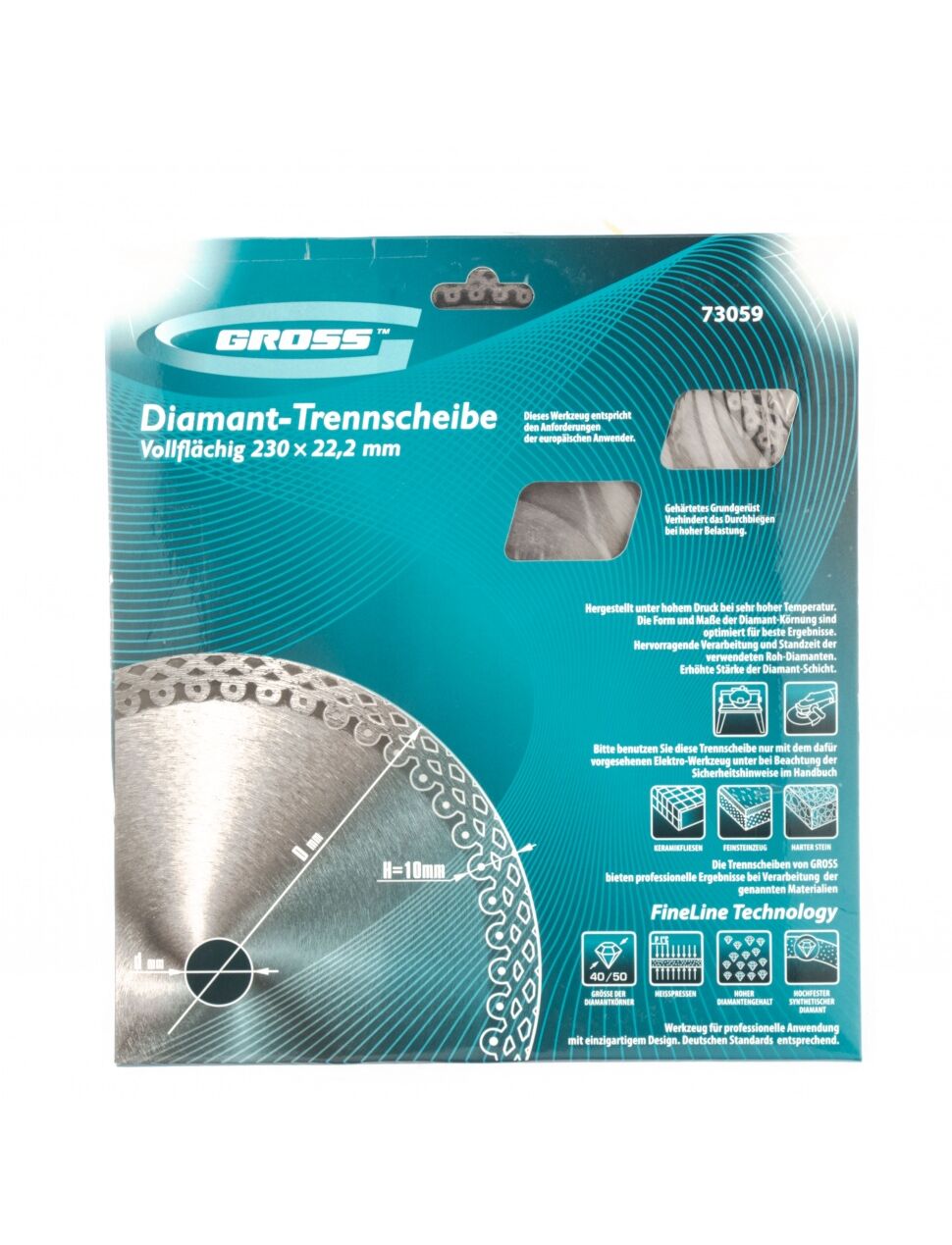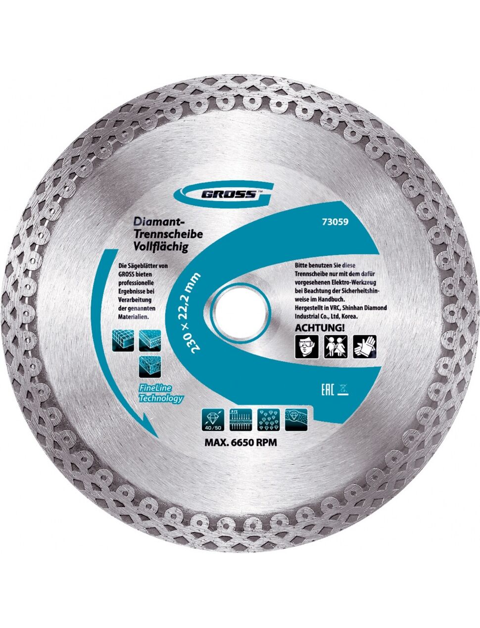 Диск алмазный 230 х 22,2 мм сплошной тонкий мокрая резка GROSS 73059