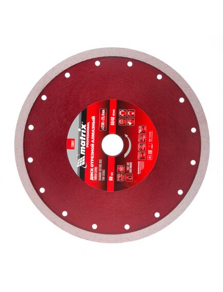 Диск алмазный отрезной сплошной тонкий MATRIX 730847 предназначен для плиткорезных станков и ручных резчиков. Применяется для мокрого реза керамогранита, керамической плитки, камня, стекла, мрамора, и других твердых природных и искусственных материалов. Диск изготовлен методом ускоренного горячего прессования. Имеет увеличенный ресурс. Сплошной профиль и оптимально подобранная связка рабочего слоя позволяет выполнять качественные и точные резы без сколов.