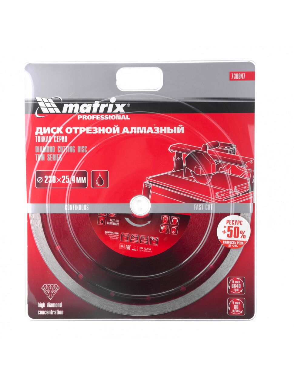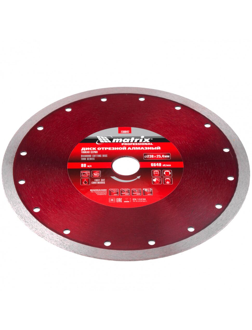 Диск алмазный 230 х 25,4 мм сплошной мокрый рез MATRIX 730847