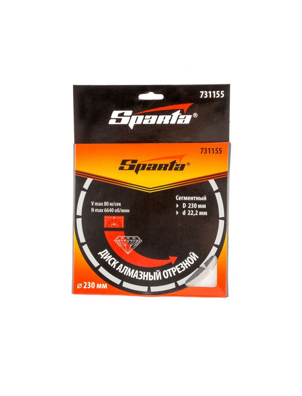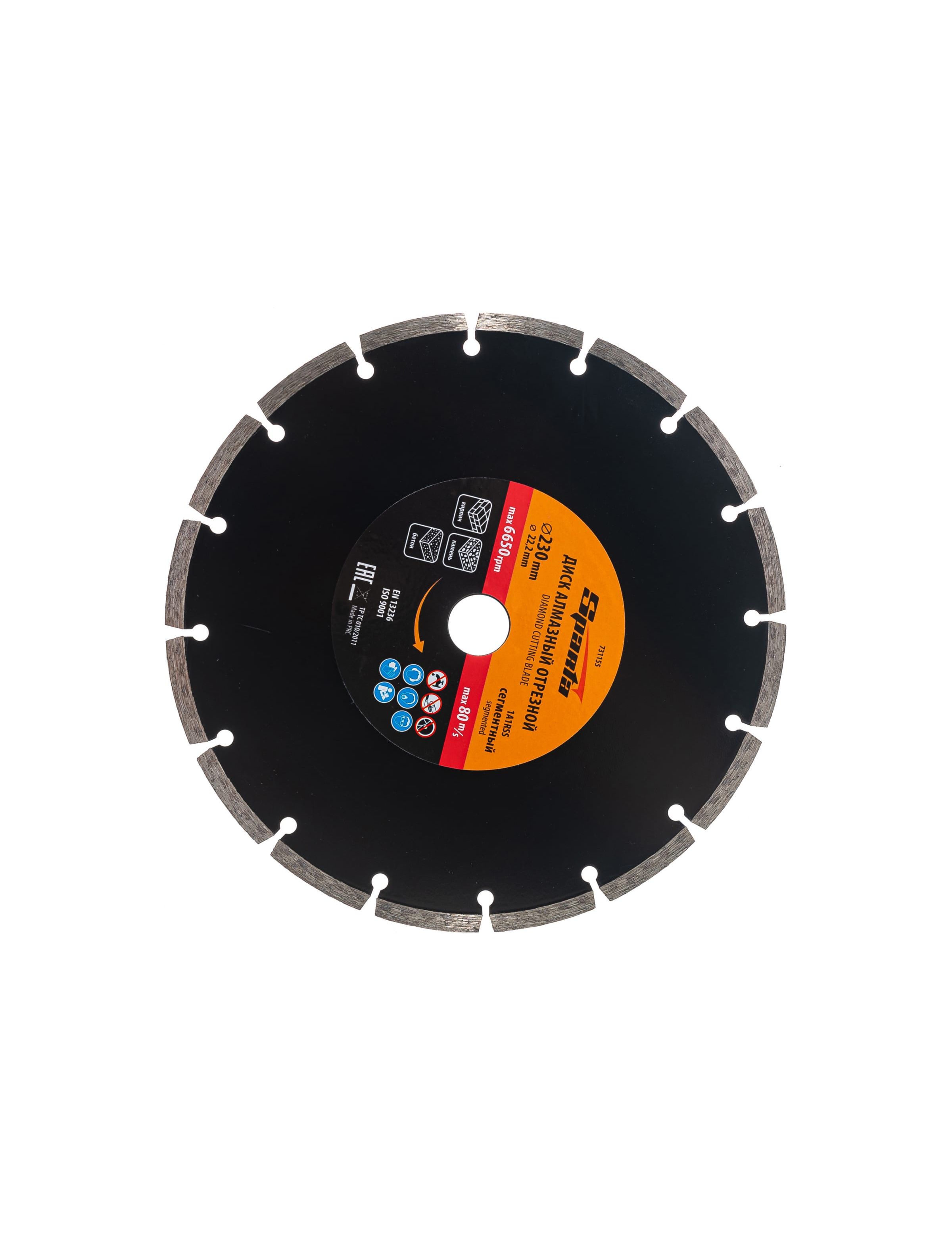 Диск алмазный 230 х 22,2 мм сегментный сухая резка SPARTA 731155
