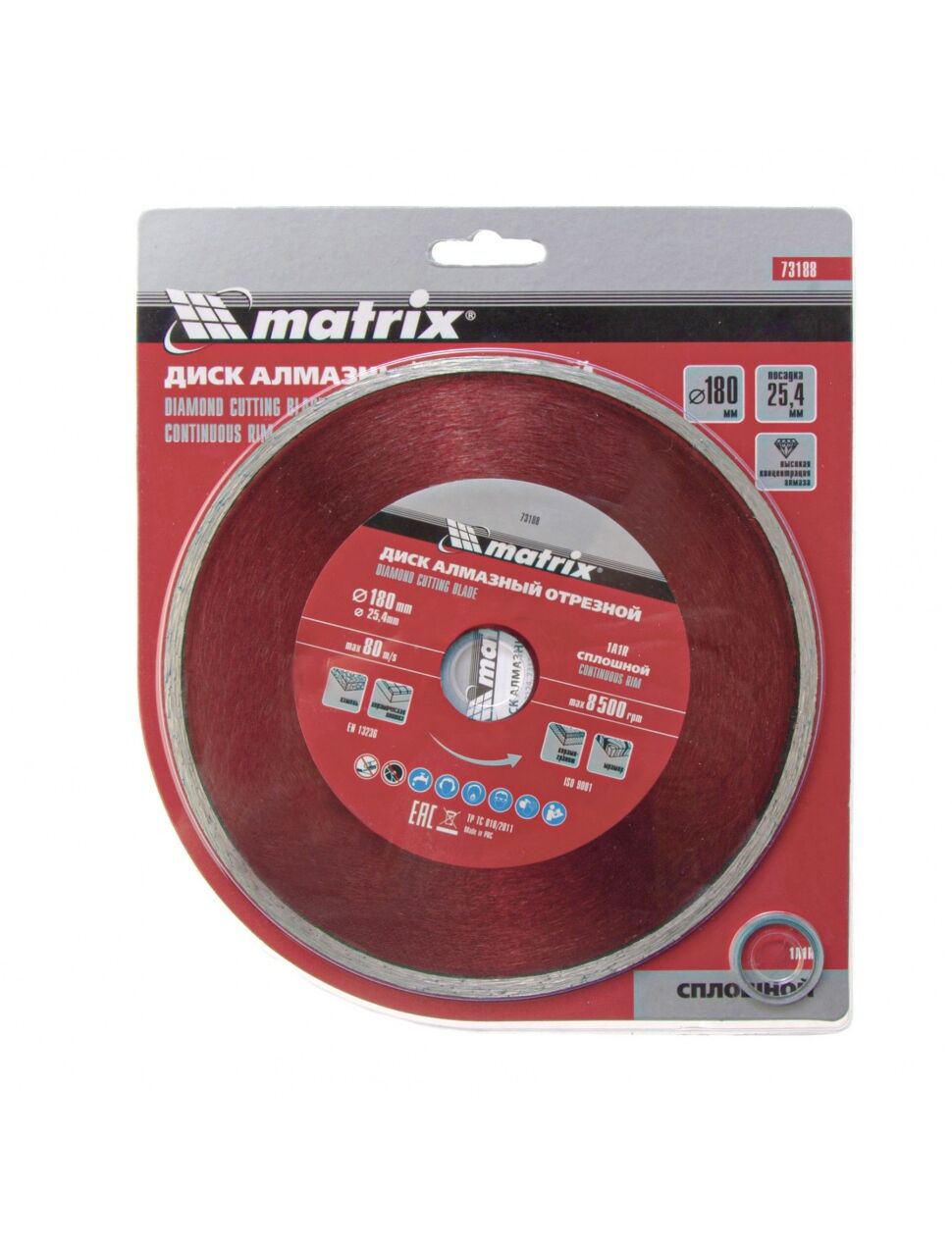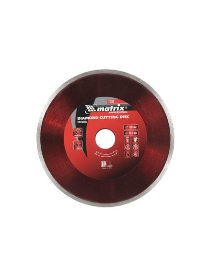 Диск алмазный отрезной сплошной Matrix 73188, 180 х 25,4 мм, предназначен для мокрого реза мрамора, керамической плитки, керамогранита, натурального или искусственного камня. Устанавливается на углошлифовальные машины и плиткорезы с посадочным диаметром 25,4 мм. Благодаря использованию водяного охлаждения улучшается качество реза, а также продлевается срок службы диска.