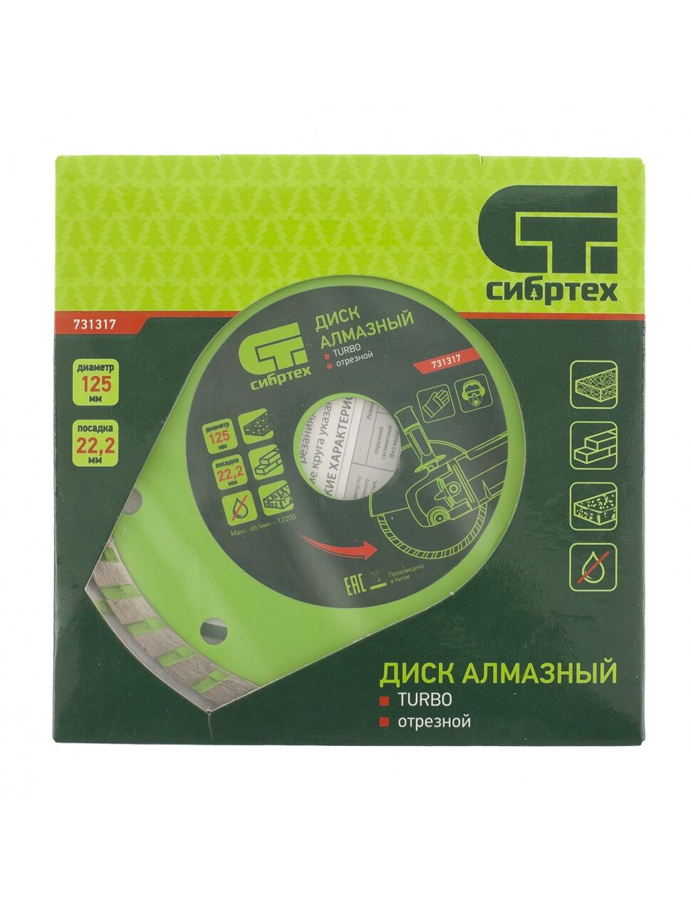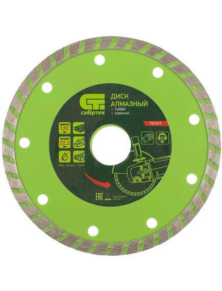 Диск алмазный 125 х 22,2 мм турбо сухая резка СИБРТЕХ 731317