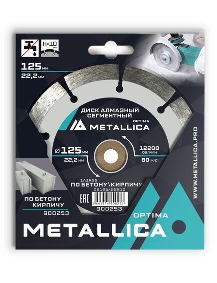 Диск алмазный сегментный 125x22,2 мм, H=10 мм по бетону и кирпичу Optima METALLICA 900253