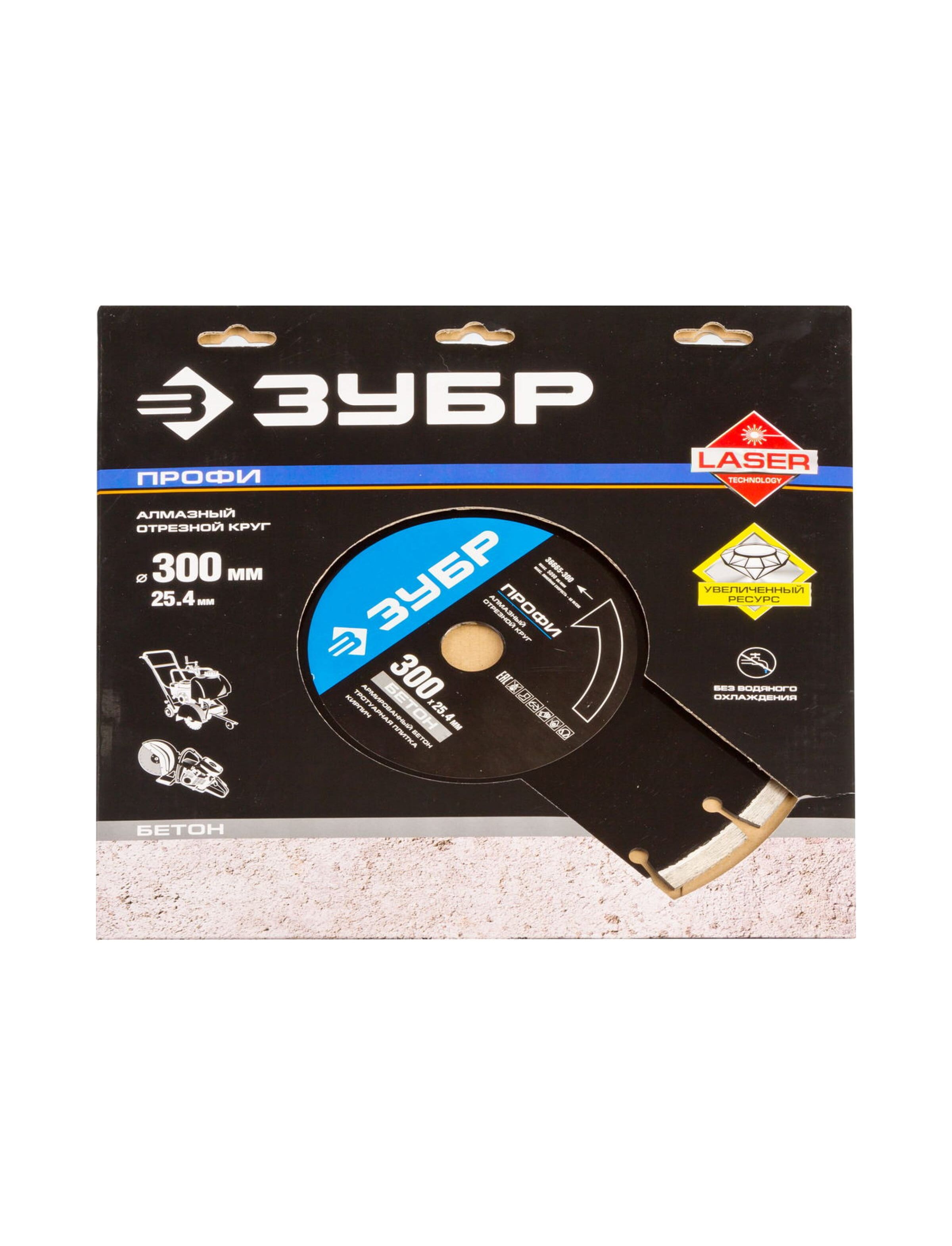 Диск алмазный 300 х 25,4 мм БЕТОН сегментный для швонарезчиков и бензорезов ЗУБР 36665-300