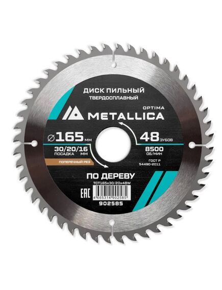 Диск пильный тв. сплав. 190x30/20/16 мм, 24 зуба,Т=2,4 мм Optima дерево METALLICA 902691