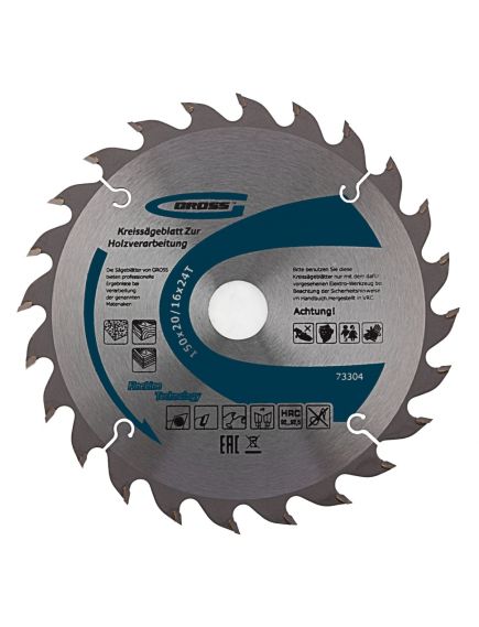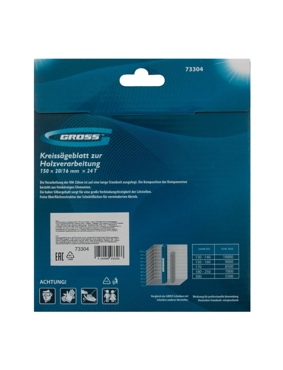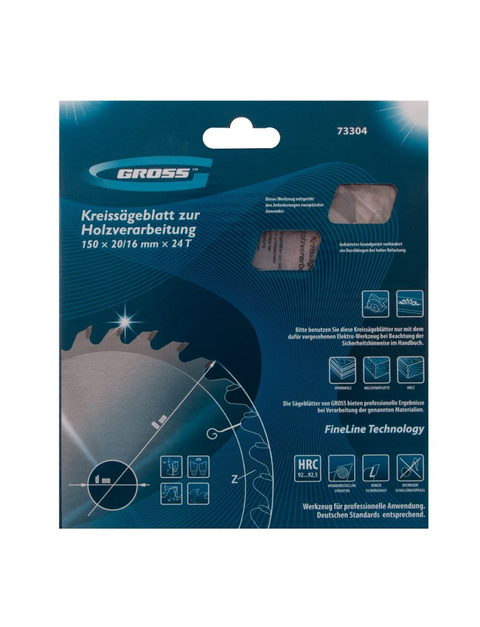 Пильный диск по дереву 150 x 20 мм 24 зуба кольцо 16/20 GROSS 73304