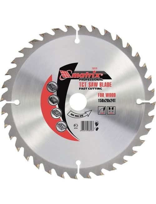 Пильный диск по дереву Matrix 160 х 20 мм 73211 с 24 зубьями и переходным кольцом 20/16 применяется в качестве оснастки на циркулярных и торцовочных пилах с соответствующим внутренним и внешним диаметром. Он используется для продольного/поперечного реза материалов из мягкой и твердой древесины, ДСП, ДВП, фанеры, столярных плит. В комплект входит переходное кольцо 20/16 для возможности самостоятельного изменения посадочного диаметра при необходимости.