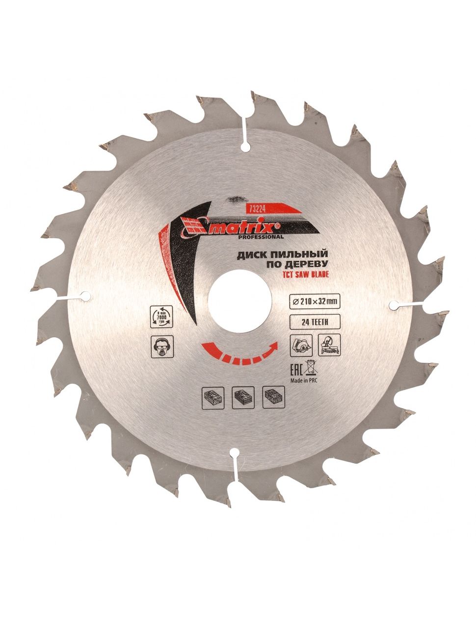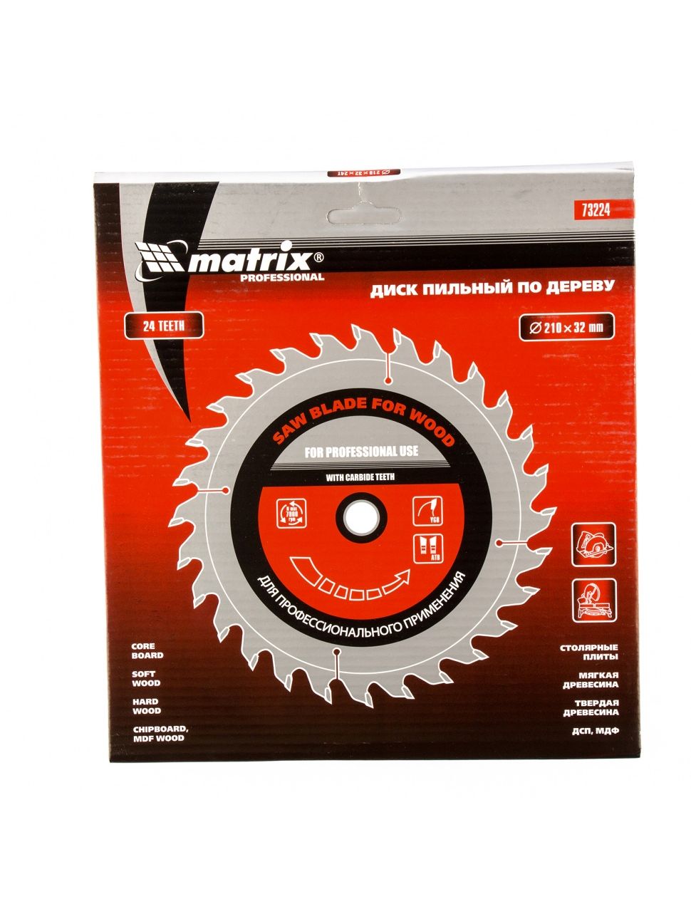 Пильный диск по дереву 210 х 32 мм 24 зуба кольцо 30/32 MATRIX 73224