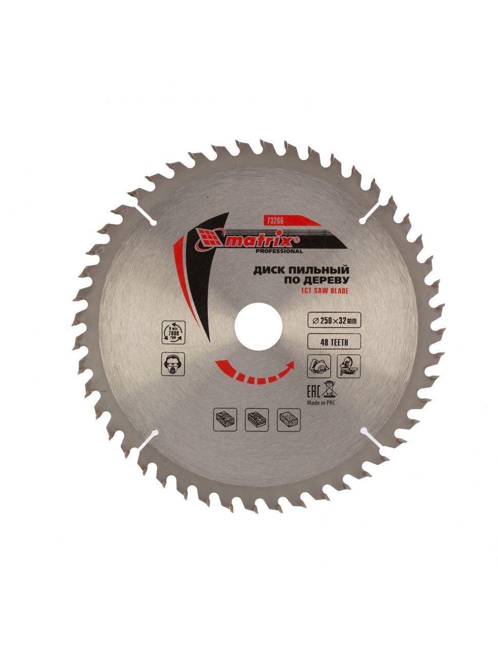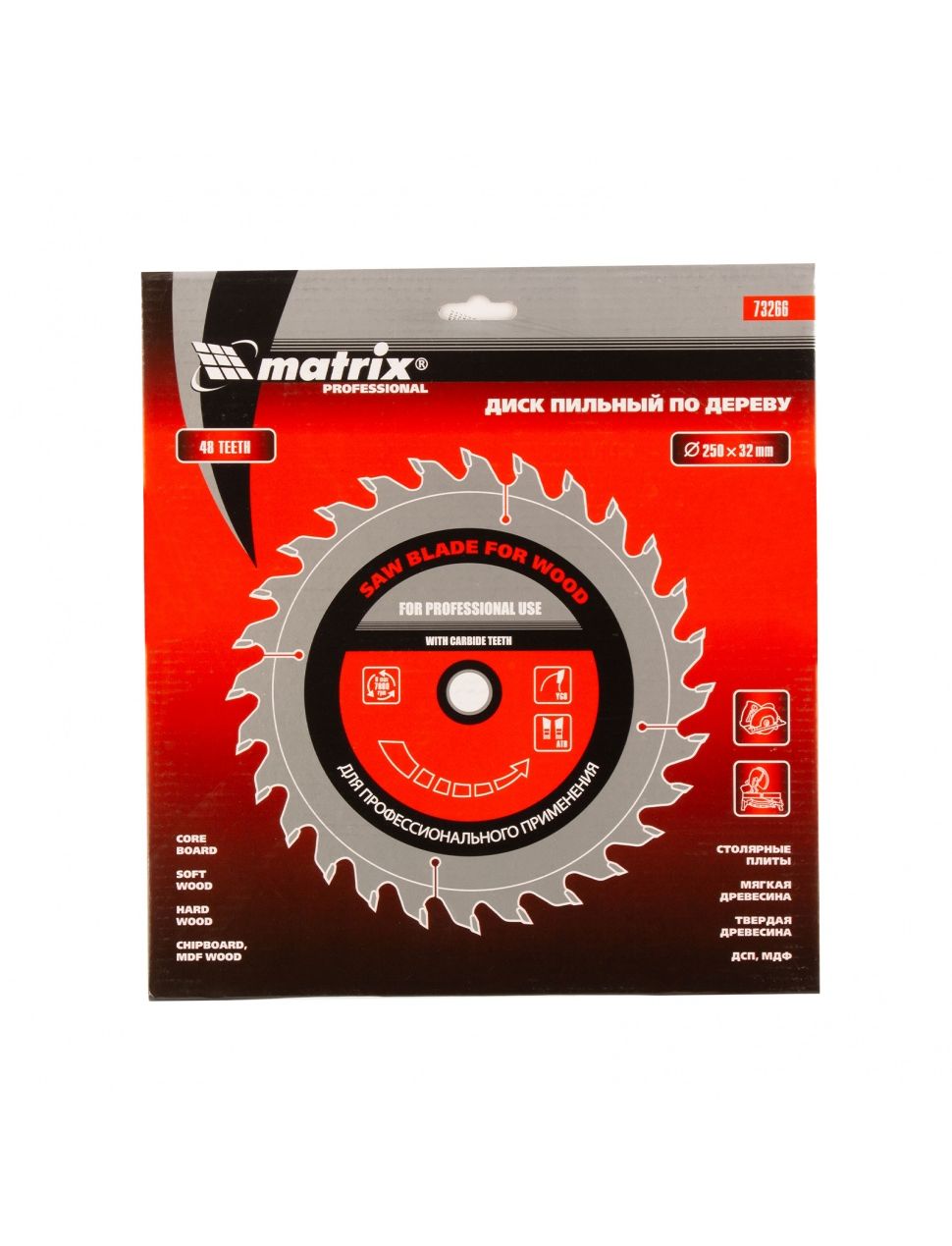 Пильный диск по дереву Matrix 250 х 32 мм 73266 с 48 зубьями применяется в качестве оснастки на циркулярных и торцовочных пилах с соответствующим внутренним и внешним диаметром. Он используется преимущественно для поперечного реза материалов из мягкой и твердой древесины, ДСП, ДВП, фанеры, столярных плит.