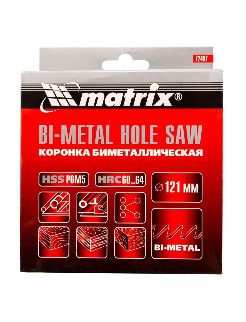 Коронка BIMETAL 121 мм Matrix 72497 изготовлена по современным технологиям и отвечает высоким требованиям специалистов. Применяется с дрелями, легкими перфораторами и со стационарными станками в безударном режиме. Предназначена для сверления отверстий в черных и цветных металлах, пластике и прочих материалах.Используется при установке сантехнических и вентиляционных труб, проводке коммуникаций, монтаже розеток и выключателей, установке замков в деревянные и металлические двери.Отверстия получаются точными и чистыми.Коронка используется в комплекте с хвостовиком. Хвостовик в комплект поставки не входит.