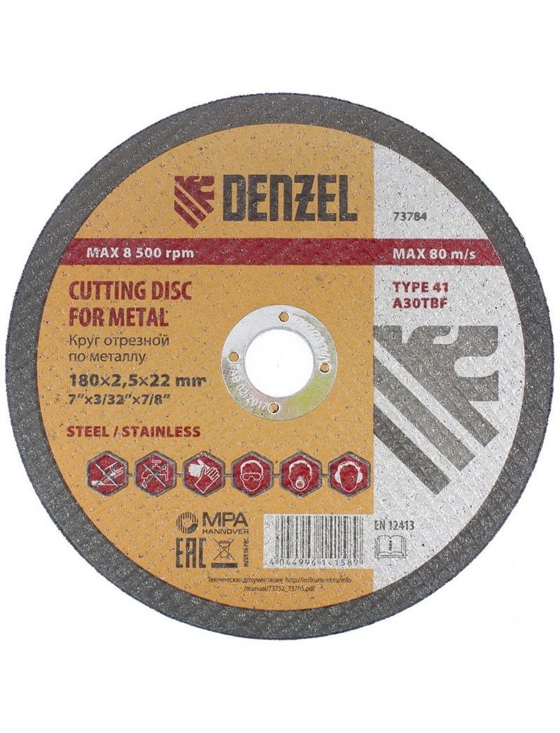 Диск отрезной по металлу 180х2,5х22 DENZEL 73784