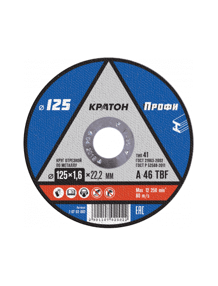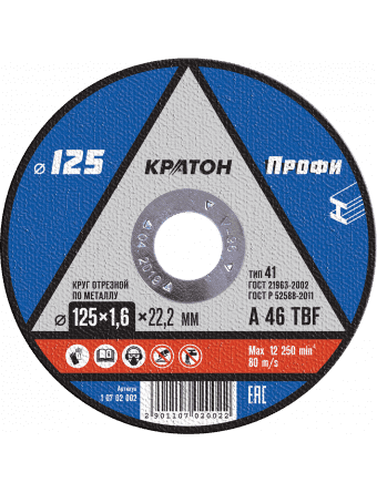 Диск отрезной по металлу КРАТОН "Профи" 125*1,6*22,2 мм