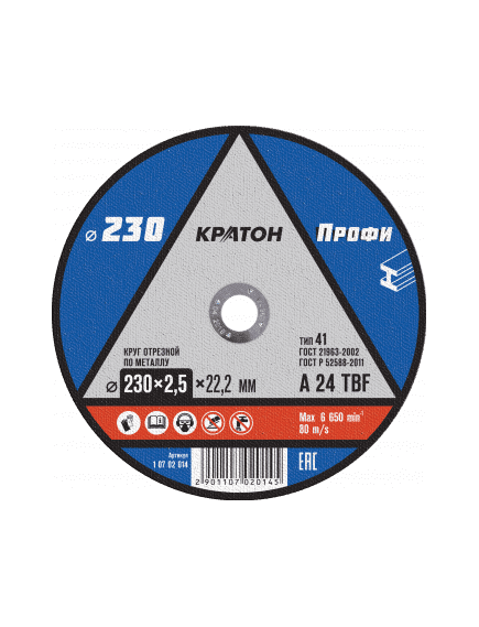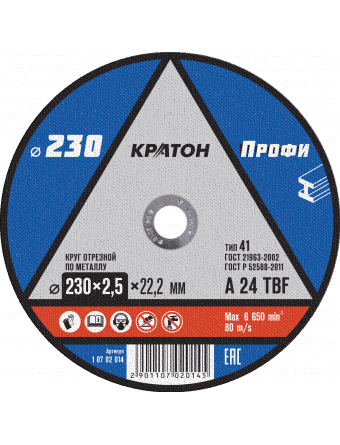 Диск отрезной по металлу КРАТОН "Профи" 230*2,5*22,2 мм