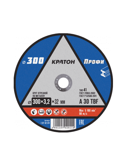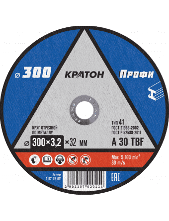 Диск отрезной по металлу КРАТОН "Профи" 300*3,2*32 мм