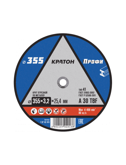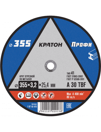 Диск отрезной по металлу КРАТОН "Профи" 355*3,2*25,4 мм