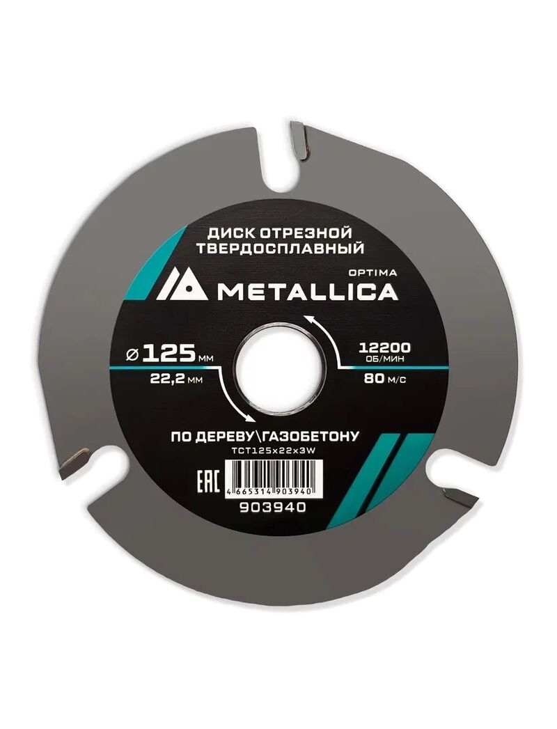 Диск отрезной твердосплавный 125x22,2 мм 3 зуба, Т=3,8мм для УШМ по дереву METALLICA 903940