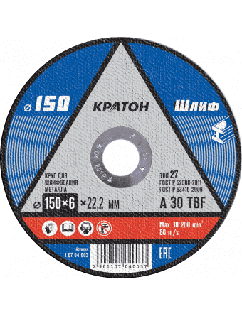 Диск шлифовальный КРАТОН 150*6,0*22,2 мм 10704003