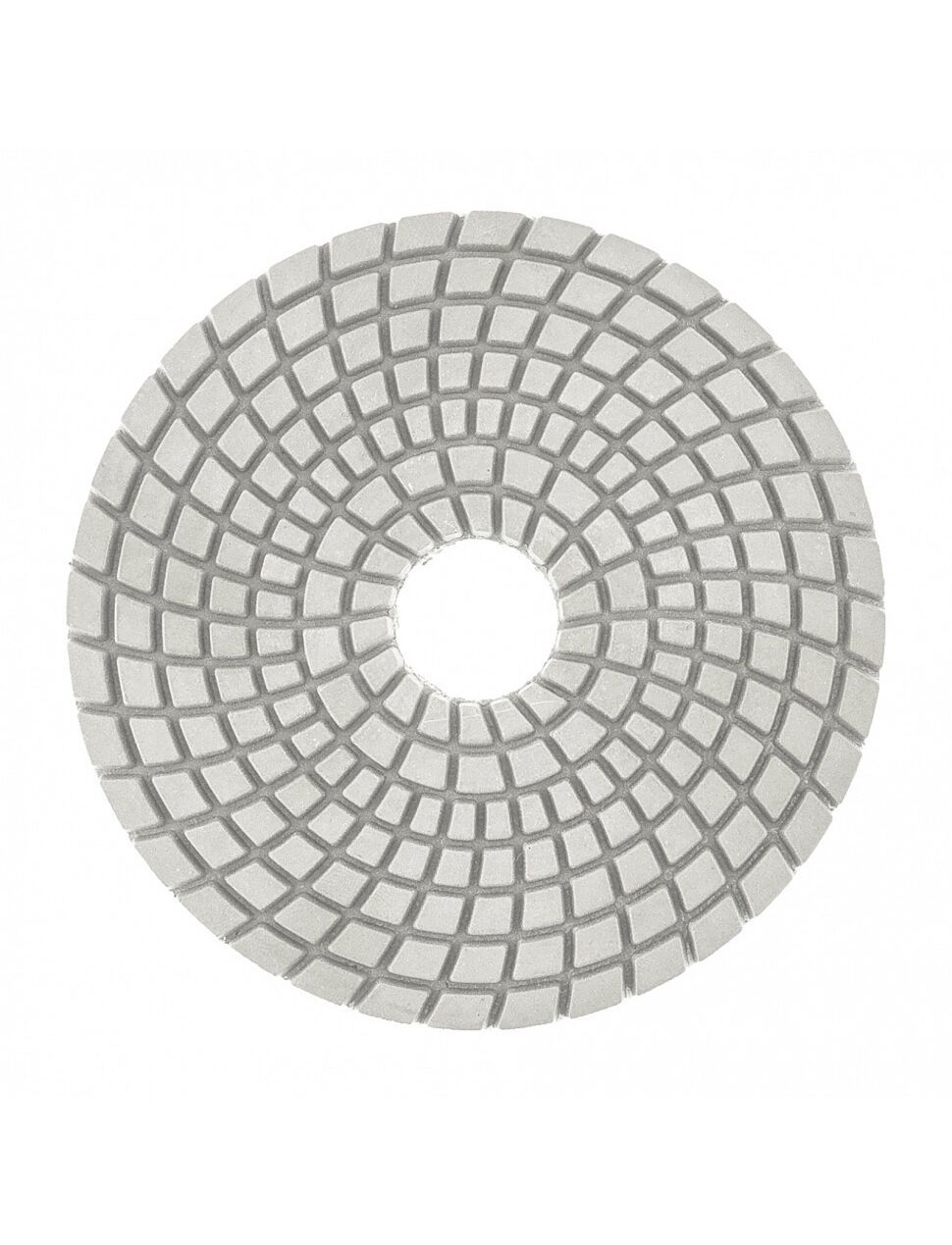 Алмазный гибкий шлифовальный круг Matrix 73510 диаметром 100 мм, с зернистостью P 400, 5 шт. в упаковке, предназначен для мокрого шлифования и используется при проведении строительных, отделочных и художественных работ. Абразив зернистостью P 400 позволяет проводить чистовую обработку, придавать гладкость гранитным, каменным, керамогранитным и мраморным поверхностям. Рабочая часть выполнена из белого термопластика с алмазным напылением и подходит для использования на цветных, преимущественно белых, материалах. Гибкая основа круга облегчает шлифовку рельефных элементов. Круг используется на УШМ с установленной опорной тарелкой для АГШК.