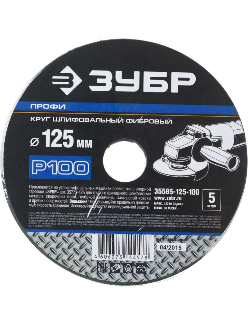 Диск шлифовальный фибровый 125 мм зернистость 100 (5 шт) ЗУБР 35585-125-100