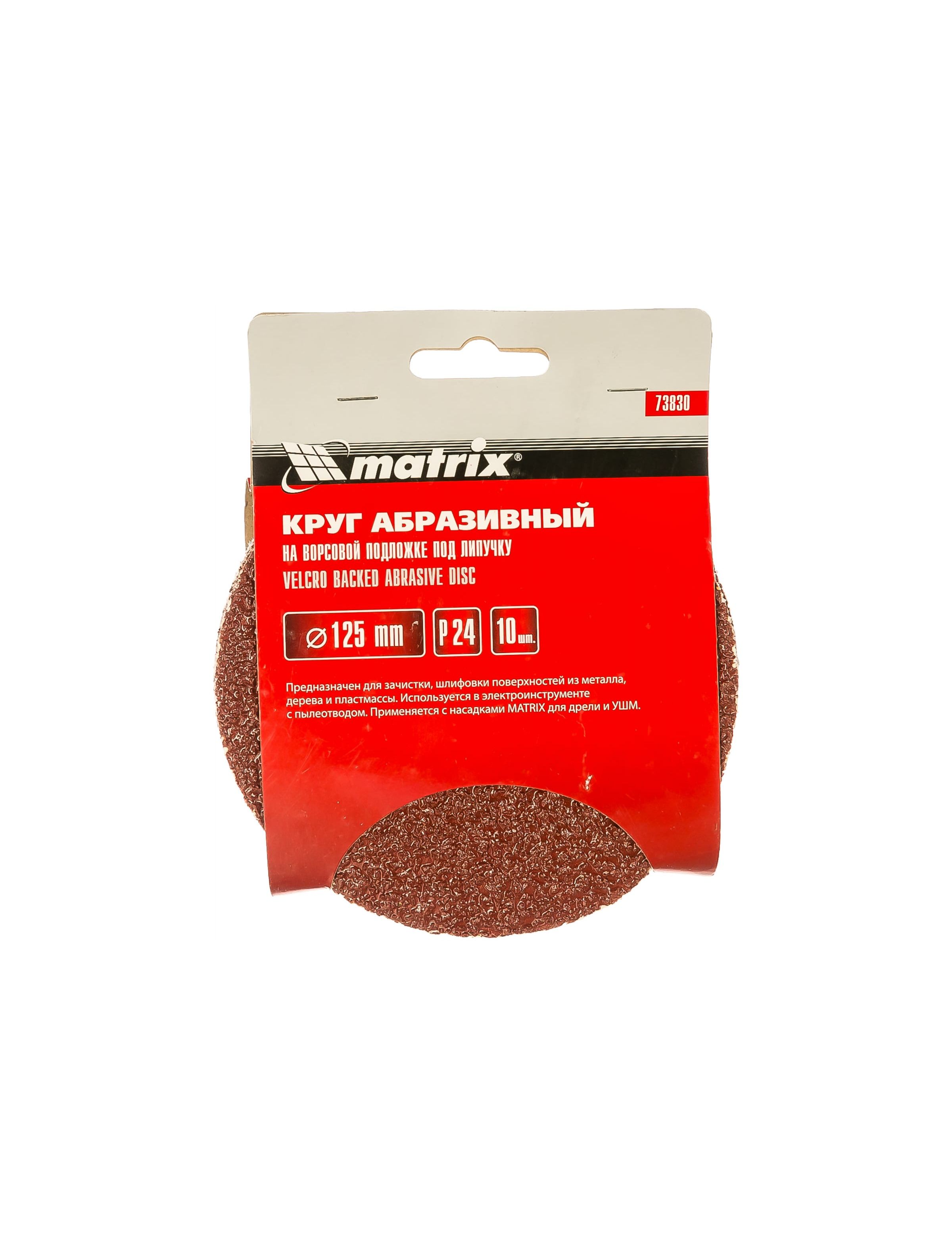 Круг абразивный на ворсовой подложке под "липучку" 125 мм зернистость Р24 10 шт MATRIX 73830