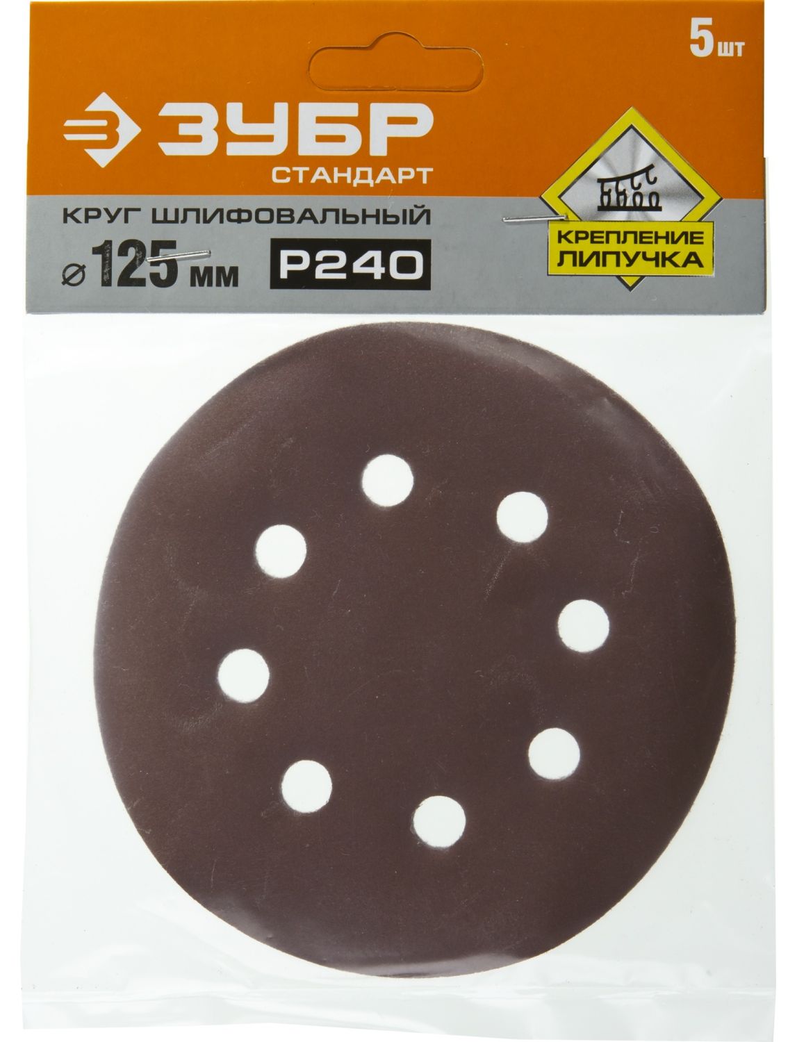 Круг абразивный на ворсовой подложке под "липучку" 125 мм зернистость Р240 5 шт ЗУБР 35350-125-240