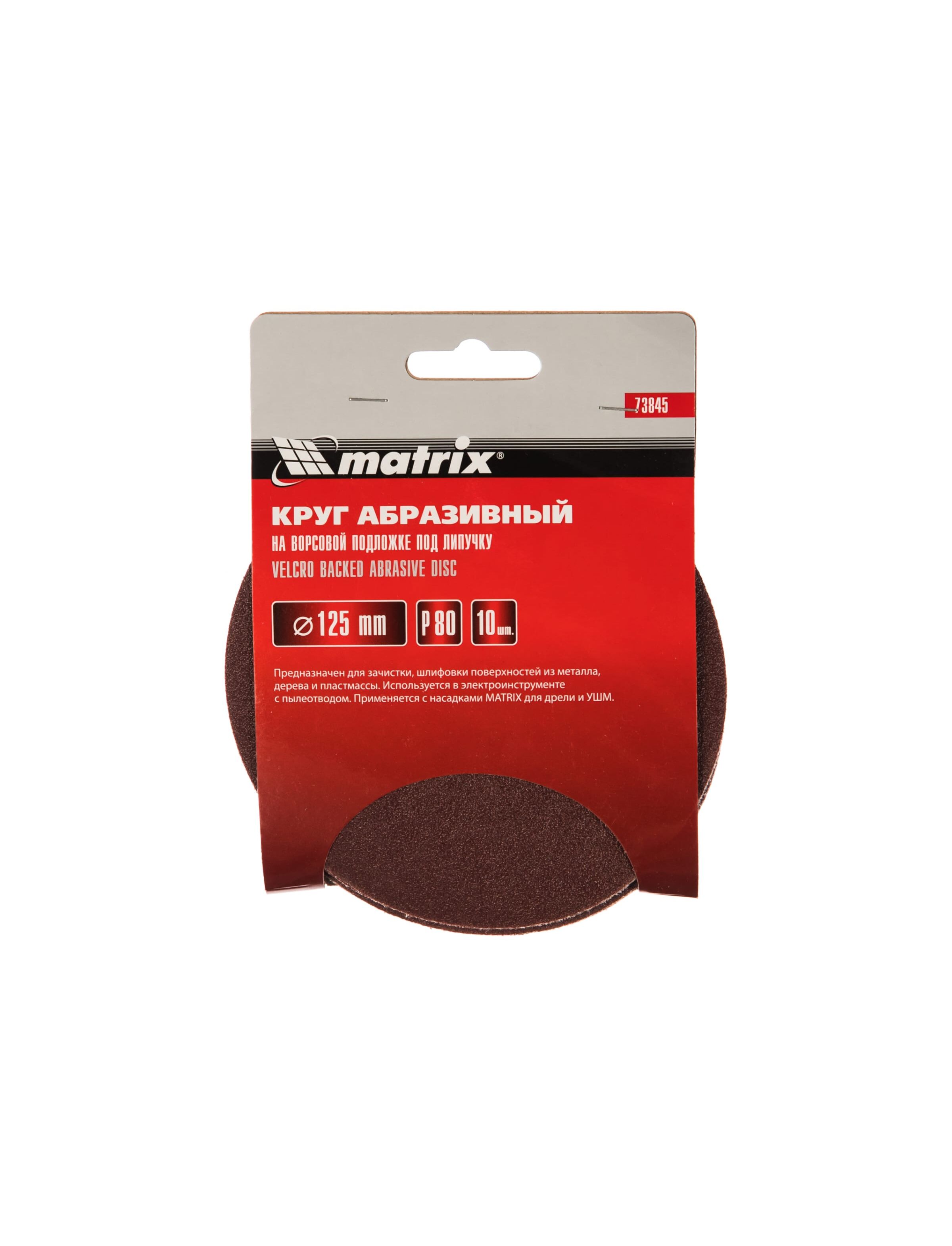 Круг абразивный на ворсовой подложке под "липучку" 125 мм зернистость Р80 10 шт MATRIX 73845