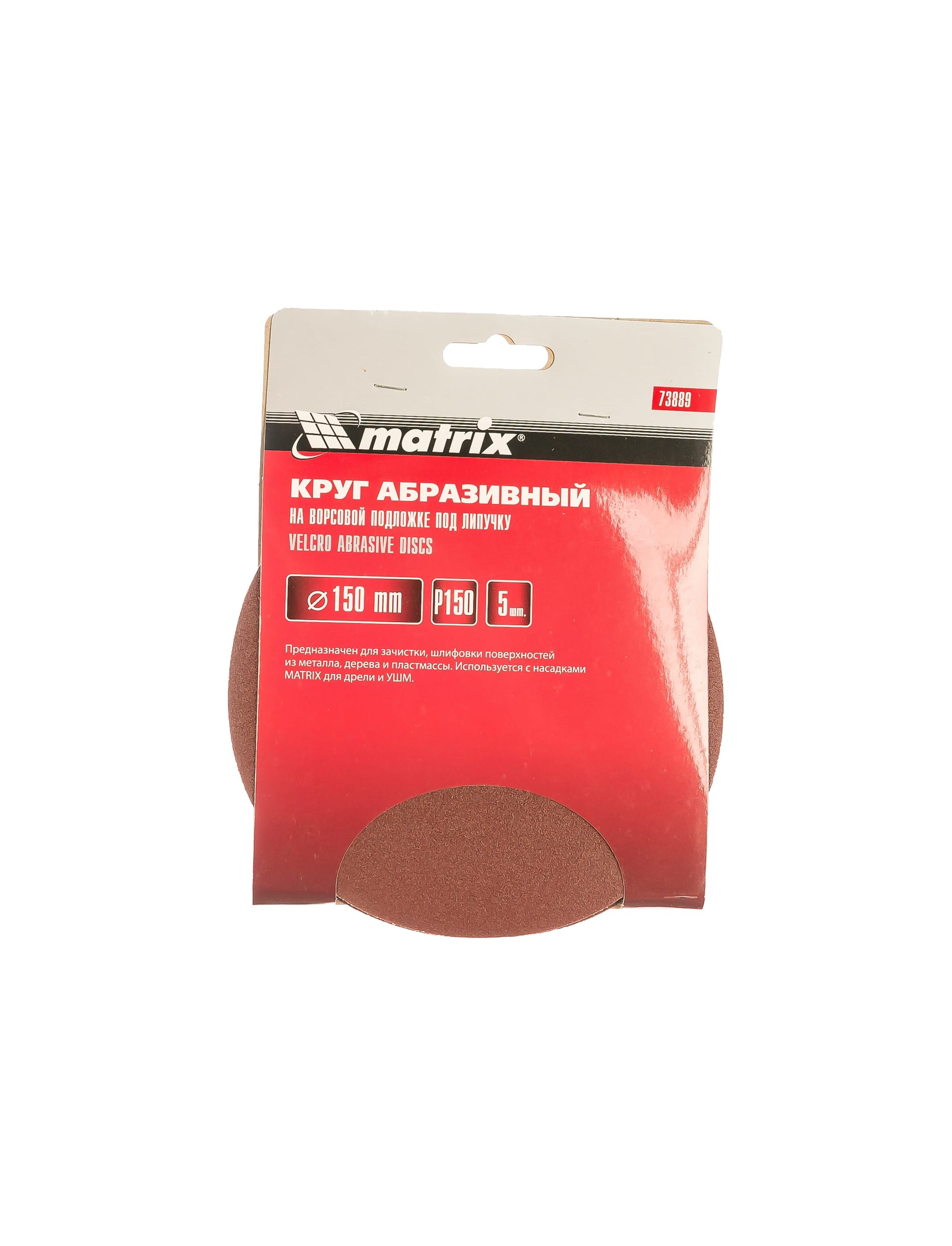 Круг абразивный на ворсовой подложке под "липучку" 150 мм зернистость Р150 5 шт MATRIX 73889