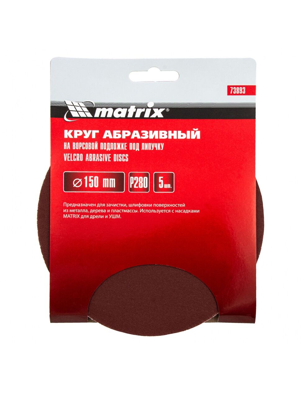 Круг абразивный на ворсовой подложке под "липучку" 150 мм зернистость Р280 5 шт MATRIX 73893