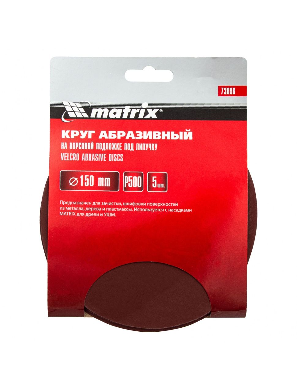Круг абразивный на ворсовой подложке под "липучку" 150 мм зернистость Р500 5 шт MATRIX 73896