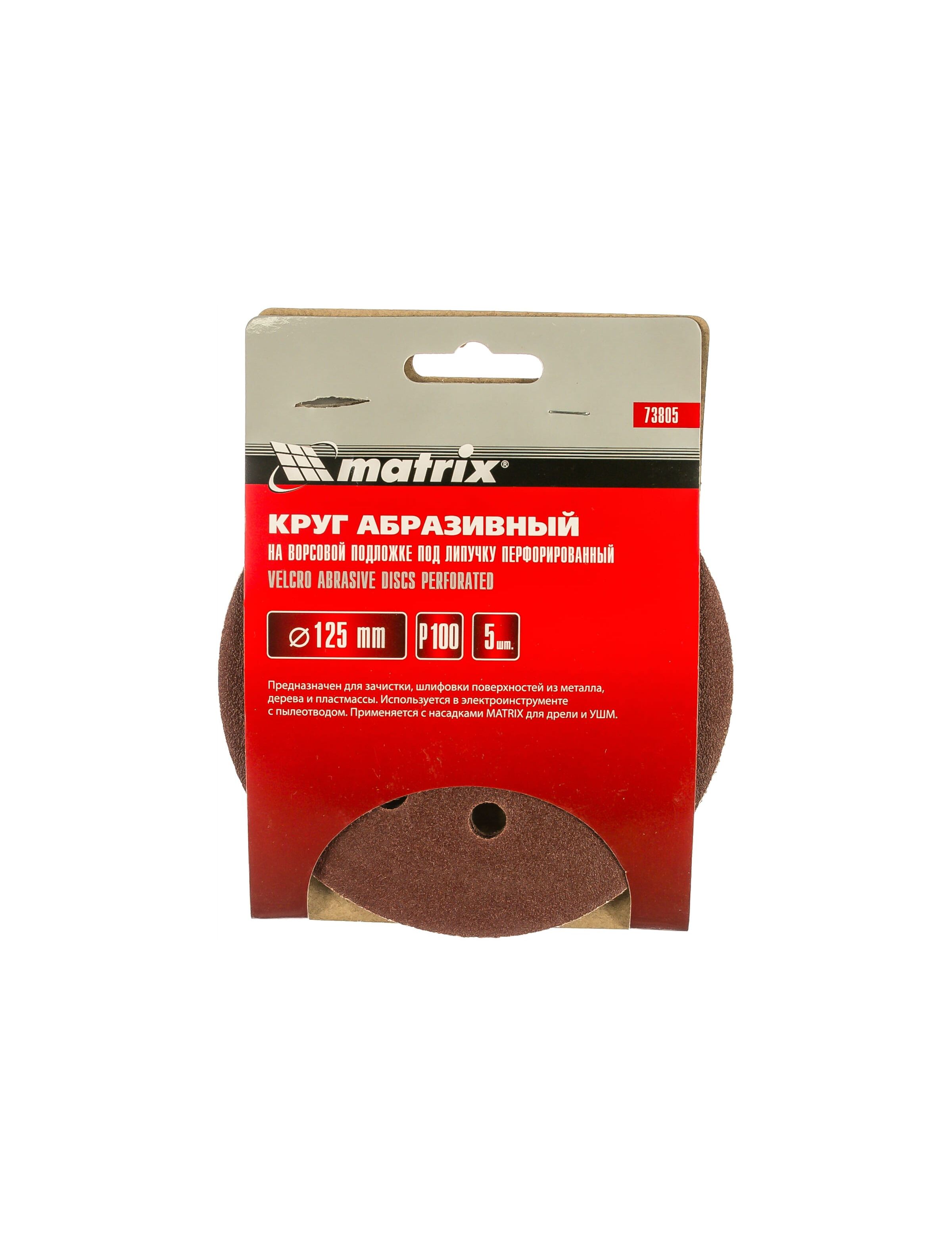 Круг абразивный на ворсовой подложке под "липучку" перфорированный 125 мм P100 5 шт MATRIX 73805